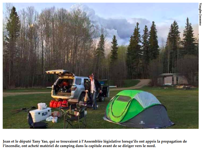 Alors que Brian Jean et Tany Yao se dirigeaient vers la communauté pour l’aider, leur assistant de circonscription, Vaughn Jessome, faisait partie des 88 000 personnes qui se rendaient vers un endroit sécuritaire.
