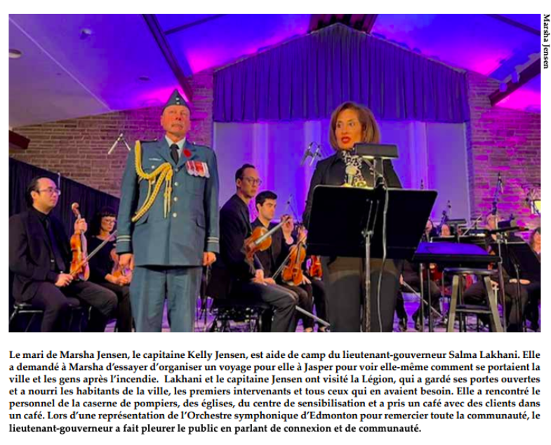 Mme Jensen s’est dite très impressionnée par la façon dont les gens veillent les uns sur les autres. À Jasper, les photos n’ont pas été diffusées par respect pour les personnes qui ont été évacuées et qui ne savaient pas si leurs maisons avaient brûlé. Lors des évacuations qu’elle a vécues l’année précédente, elle a été étonnée de voir les habitants de Hinton ouvrir leurs maisons à des étrangers.